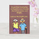 This humorous customizable greeting card template has a cartoon senior citizen couple on the front. They look angry. It says, "So you have hearing loss, aching joints, more funerals than dinner parties, and shingles...Look on the bright side…"
