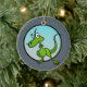 Funny little dinosaur illustration circle ceramic ornament. Back date and text can be customized.