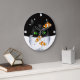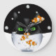 Funny black cat watching clownfish in fish bowl with pearlized dots for the time placement markers