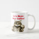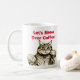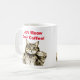 Picture of cute cat with funny meow quote on coffee mug. Fun customizable gift for cat lovers.