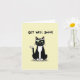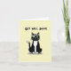 This heartfelt 'get well' greeting card features a charming pale yellow background that exudes warmth and cheer. The star of the card is a cute black and white cartoon cat sitting front and center, sporting a white bandage around its head. With vibrant green eyes, a pink nose and inner ears, and a curled tail, this little feline is sure to bring a smile to anyone's face. The cat's white chest and paws add a touch of sweetness to the design, perfectly complemented by the bold, handwritten-style "GET WELL SOON!" text in black above it. 🐱💛 Get ready to spread some joy and wishes for a speedy recovery with this adorable and comforting greeting card!