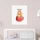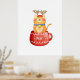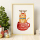 Funny Cat in Cup Reindeer Antlers Red Nose Xmas Poster