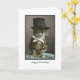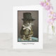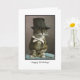 A humorous birthday card featuring a vintage photograph of a cat in a top hat and bow tie. The image is a reproduction of a vintage postcard originally published before 1923 by the Hugh Leighton Co, Portland. The inside verse reads: Where's the party?
