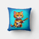 Funny Cat Playing Guitar Throw Pillow