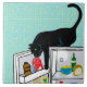 A clever black cat helps her or himself to a Dairy snack in the open refrigerator. My artist life was creating narratives about cats and cat life in the Crafts markets for many years. In this series of art tiles, I return to my terry johnson tiles. My love of cats makes them my favorite subject foe my art making.