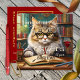 Birthday card featuring a cute cat with glasses ( :-) ) in a library or room with lots of books. Add your own funny (or other) texts. On the back is a classy burgundy red design with the same image framed by gold. Beautiful for any over the hill birthday and a cat and/or wine lover. Of course purrfect for a crazy cat lady :-)