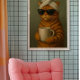 Start your mornings with a smile—this whimsical funny cat spa wall art features a relaxed orange tabby in true self-care mode. Wrapped in a striped towel turban, rocking dark sunglasses, and clutching a warm coffee mug, this painting perfectly captures that “don’t talk to me until I’ve had my coffee” energy. The charming retro-inspired aesthetic blends classical painting techniques with a humorous, modern twist, making it a unique conversation starter for any space.