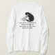 I love this shirt. I had written to the artist asking her if this picture was available on a shirt, and she wrote me back telling me where I could find the shirt. These shirts can be custom made to have a different saying. I loved this saying and went with it. The artist wrote me back later to tell me that she had seen my order go through. How's that for service? Pretty special. It's just as displayed. Perfect!
