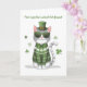 This playful St. Patrick's Day card features a stylish cat dressed in a patterned green sweater, a bowtie, and a hat with a buckle, surrounded by vibrant shamrocks. The cheerful design is full of charm and feline flair, perfect for celebrating the holiday with a touch of humor. The inside message combines Irish cheer with a cat-themed twist, making it a unique and fun way to send St. Patrick's Day wishes to anyone who loves cats or enjoys a bit of lighthearted fun.
