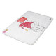 This rug is just as pictured! Vibrant Red and very soft material, nice to step in out of the tub! Matches my set of accessories and shower curtain! A must have to add some whimsy to your bathroom! Very nice, vibrant and clear print! Beautiful!