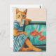 A cute ginger cat in a dress with a goldfish mixed media style collage with vintage elements AI generated art