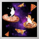 Funny cats riding pizza on space poster