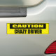 A funny caution bumper sticker with the text "Caution Crazy Driver".