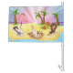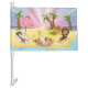 Funny Cavalier King Charles Spaniels at the Beach Car Flag