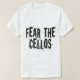 Fun mens cello tee for orchestra and symphony cellists or cello teachers and students. Ragged look Cello shirt with Fear The Cellos design.