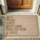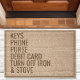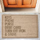 Never forget the essentials with this customizable checklist doormat, perfect for busy households. Personalize the text to suit your needs, creating a unique, functional entryway accessory. Ideal for families, new homeowners, and those who love a humorous touch to help remember the essentials before heading out.