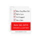 This funny Save-the-Date postcard features a checklist of important events that lead up to the big day. Text is black on white and white on red. Alternate version available in pink and blue: