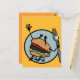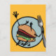 Funny cheeseburger illustration vertical postcard. Back of card is a different color than the front. Front and back colors can be customized.