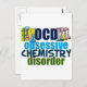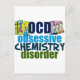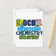 Funny chemistry teacher gift that reads OCD Obsessive Chemistry Disorder next to science beakers full of chemicals for an experiment. A cool chemistry major present for a scientist.