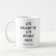 Great birthday mug for a chess player. The modern black typography features a gag that says "Life Wouldn't Be Life Without Chess". Add a name by clicking on the "Personalize" link above