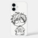 A cute and funny chibi anime boy with a confused expression and messy hair. A minimalist black and white design perfect for anime lovers and humor fans.