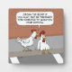Here's a hilarious cartoon design featuring a wise chicken warning another chicken about the potential consequences of crossing the road. These cute and funny chickens will put a smile on everyone's face and will tickle you down to your nuggets!