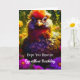 Pretty colorful chicken sitting in a purple and pink flower patch funny chicken pun birthday card.
