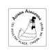 This customizable round return address rubber stamp has a cute cartoon chicken looking at you curiously. There is room in a circle around the chook for your name and return address.