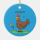 Funny chicken rustic whimsical cartoon ceramic ornament
