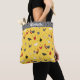 This funny chicken tote bag has a Memphis style look with a chicken farm theme. Modern geometric patterns are used in the design to color roosters and chickens in a pastor with a yellow chicken wire background. There are two big roosters and ten lovely hens in this pattern. A fun updated chicken pattern for a modern country look. Perfect for anyone that is chicken crazy. You can make the pattern smaller or larger on the tote bag. Personalize this bag with your name or leave it blank.