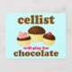 Funny chocolate cupcake music design with Cello - Will Play For Chocolate quote. Cute cello gift for music teachers and cellists in orchestra.