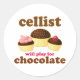 Funny chocolate cupcake music design with Cello - Will Play For Chocolate quote. Cute cello gift for music teachers and cellists in orchestra.