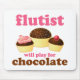 This funny flute mousepad has yummy cupcakes and Flute - Will Play For Chocolate music slogan. Great gift for flute teachers or students.