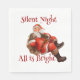 Funny Cute Watercolor Santa Claus sitting on Modern Elegant Typography Silent Night! All is Bright! paper napkins. Matching products available.