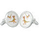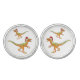 Time for a funny prehistoric Christmas with these Fun velociraptor Santa dinosaur cufflinks. Raptors wearing a Santa hat ideal humor for adults who love dinosaurs and the perfect way to bring dino fun and laughter to your family and friends. Velociraptor illustrations in green yellow and orange hues with a red and cream Xmas hat original artwork by artist Catherine Sweetman