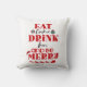 Funny Christmas Eat Cookies Drink Wine & Be Merry Throw Pillow