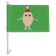 This awesome car flag features a funny cartoon of an egg with arms and legs. The egg has arms and legs and a small crack in its head exposing the white inside. It has blue eyes with a black pupil and a big smile where the yolk of the egg can be seen. The eggshell looks rough. This Christmas egg is wearing a santa hat ready to party this holiday season. There is customizable text on the back so you can personalize your car flag.