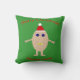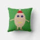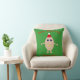 This awesome pillow features a funny cartoon of an egg with arms and legs. The egg has arms and legs and a small crack in its head exposing the white inside. It has blue eyes with a black pupil and a big smile where the yolk of the egg can be seen. The eggshell looks rough. This Christmas egg is wearing a santa hat ready to party this holiday season.