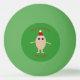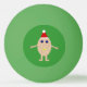 This awesome Ping Pong Ball features a funny cartoon of an egg with arms and legs. The egg has arms and legs and a small crack in its head exposing the white inside. It has blue eyes with a black pupil and a big smile where the yolk of the egg can be seen. The eggshell looks rough. This Christmas egg is wearing a santa hat ready to party this holiday season.