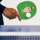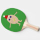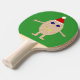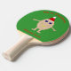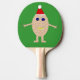 This awesome Ping Pong Paddle features a funny cartoon of an egg with arms and legs. The egg has arms and legs and a small crack in its head exposing the white inside. It has blue eyes with a black pupil and a big smile where the yolk of the egg can be seen. The eggshell looks rough. This Christmas egg is wearing a santa hat ready to party this holiday season.