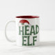 Buy this Christmas gift featuring the funny caption, Head Elf, with a Santa Claus hat perched on top.