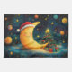Funny Christmas Moon Galaxy Celebration Kitchen Towel