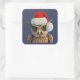 Funny Christmas Owl Wearing Santa Hat Square Sticker