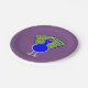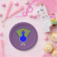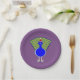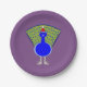 This awesome paper party plate features a bright and bold Christmas Peacock wearing a Santa hat. The bird has a bright blue belly with a beautiful collection of feathers held proudly behind. The eyespots are blue, brown and green. The Peacock has big black eyes and a cute little gray beak.