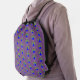 This awesome backpack features a bright and bold Christmas Peacock wearing a Santa hat. The bird has a bright blue belly with a beautiful collection of feathers held proudly behind. The eyespots are blue, brown and green. The Peacock has big black eyes and a cute little gray beak.