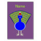 This awesome tablecard features a bright and bold Christmas Peacock wearing a Santa hat. The bird has a bright blue belly with a beautiful collection of feathers held proudly behind. The eyespots are blue, brown and green. The Peacock has big black eyes and a cute little gray beak.