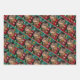 Set of three gift wrapping paper sheets featuring funny and festive cats and dog pets in repeated patterns over Christmas backgrounds. Measures 19" x 29" inches. Available in matte and semi-gloss finish.