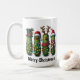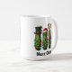 A cute, fun mug to drink your coffee or hot chocolate in this holiday season! Christmas pickles in jars wrapped in Christmas lights and dressed in Santa , snowman and reindeer hats.