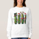 A cute, fun shirt for the holiday season! Christmas pickles in jars wrapped in Christmas lights and dressed in Santa , snowman and reindeer hats.