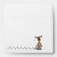 Funny and cute Christmas illustration featuring a reindeer with Christmas lights on his horns and reindeer footsteps.